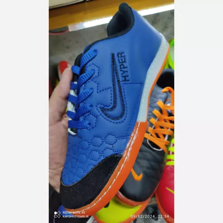 کفش ورزشی فوتبال فوتسال سالنی نایک هایپیر با کیفیت عالی تقویت شده بسیار مقاوم رویه گلدوزی پنجه چرم طبیعی سایز 36تا40 قیمت فوقالعاده استثنای مشاوره سایز زنگ قیمت گفتگو