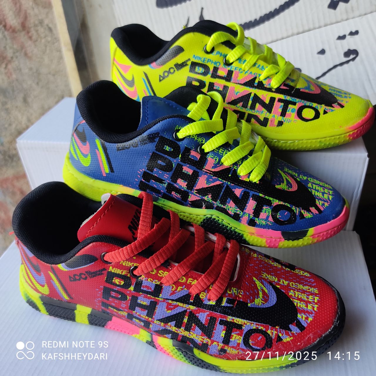 محصول جدید کفش فوتسال فوتبال سالنی نایک کفش ورزشی سالنی Nike Phantom با زیره عالی کیفیت فوقلاده رویه خارجی با کیفت بالا که چند لایه تقویت شده برای دوام وایمنی پای شما برابر ضربات مداوم زیره لاستیکی نرم با چسبندگی در سالنهای ورزشی 📐سایز بندی 35تا45 طرحی بسیار شیک پرطرفدار.