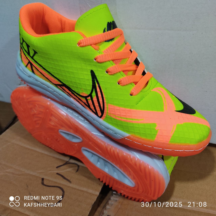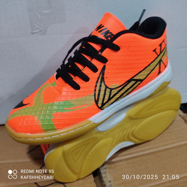 کفش ورزشی فوتبال سالنی نایک ایکس x میانه سایز ۳۵تا۴۰ زیره pvc مواد تو نرم با کیفیت دور دوخت رویه فلت نرم انعطاف پذیر با کیفیت